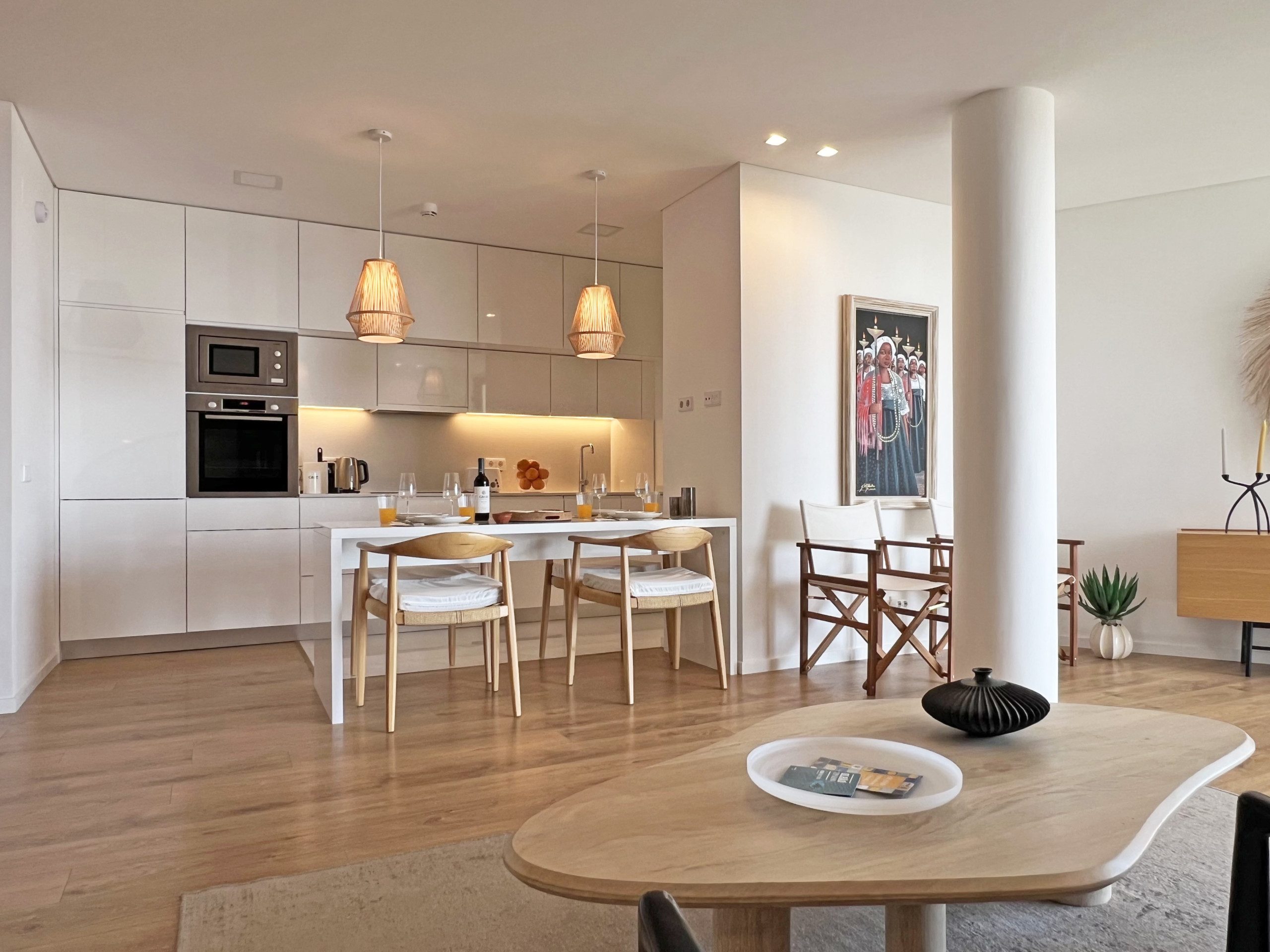 Tenho em mim os argumentos ideais para desfrutares, seja na minha sala comum com sofá-cama e zona de refeições onde podes saborear dos teus cozinhados gourmet que podes preparar na minha cozinha equipada com tudo o que precisas, seja na minha fantástica varanda, onde se vislumbra a Ria, tão formosa e, com um barbecue onde vais ser chef dos teus deliciosos grelhados e estarás a dançar em mim, com um drink na mão e um sorriso que só a felicidade plena e aquela brisa do sul te podem trazer.
