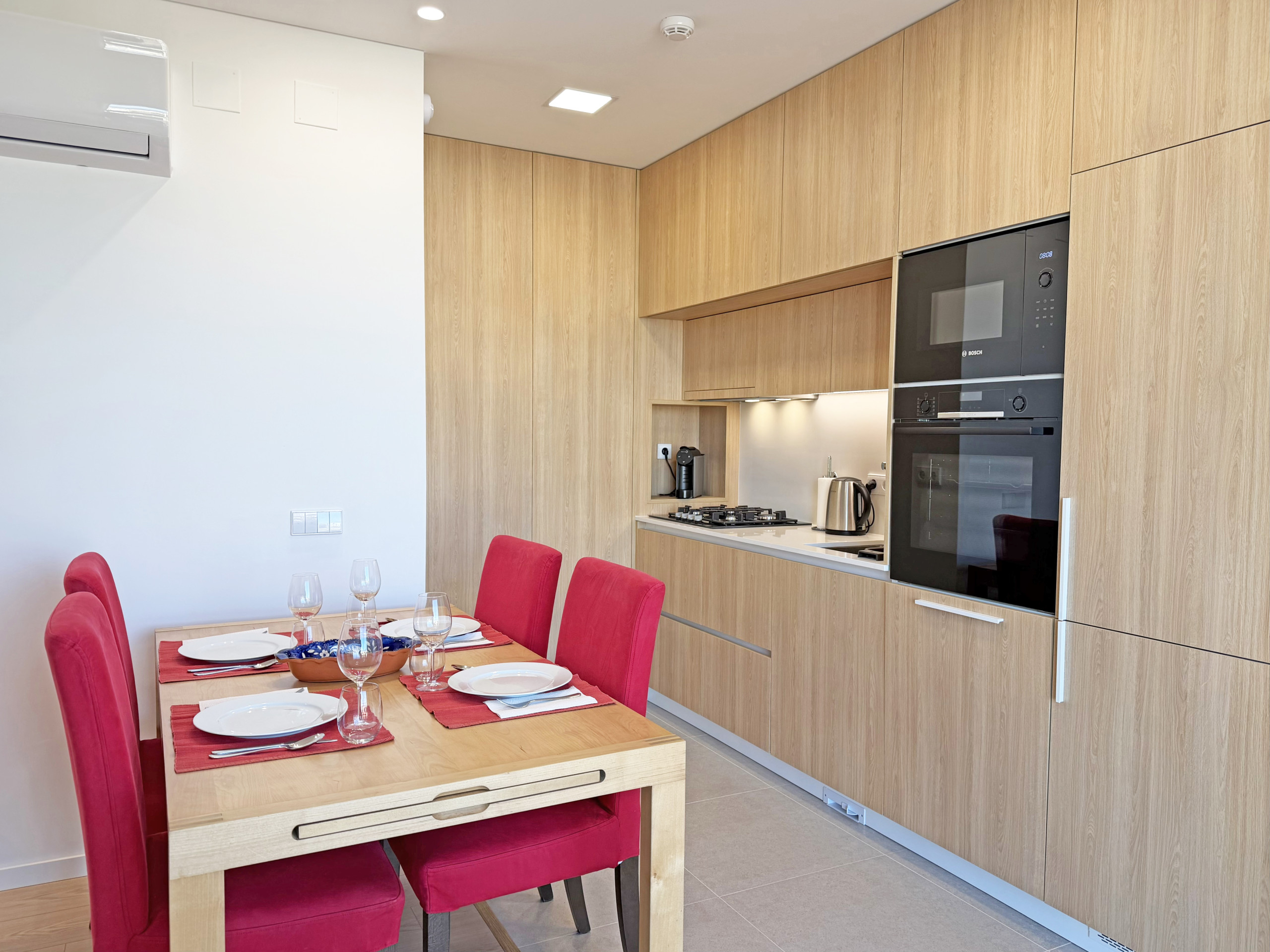 Tenho em mim os argumentos ideais para desfrutares, seja na minha sala comum com sofá-cama e zona de refeições onde podes saborear dos teus cozinhados gourmet que podes preparar na minha cozinha equipada com tudo o que precisas, seja na minha fantástica varanda, onde se vislumbra a Ria, tão formosa e, com um barbecue onde vais ser chef dos teus deliciosos grelhados e estarás a dançar em mim, com um drink na mão e um sorriso que só a felicidade plena e aquela brisa do sul te podem trazer.