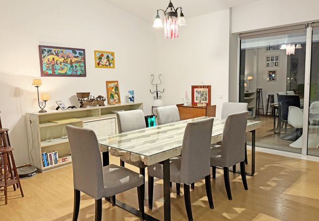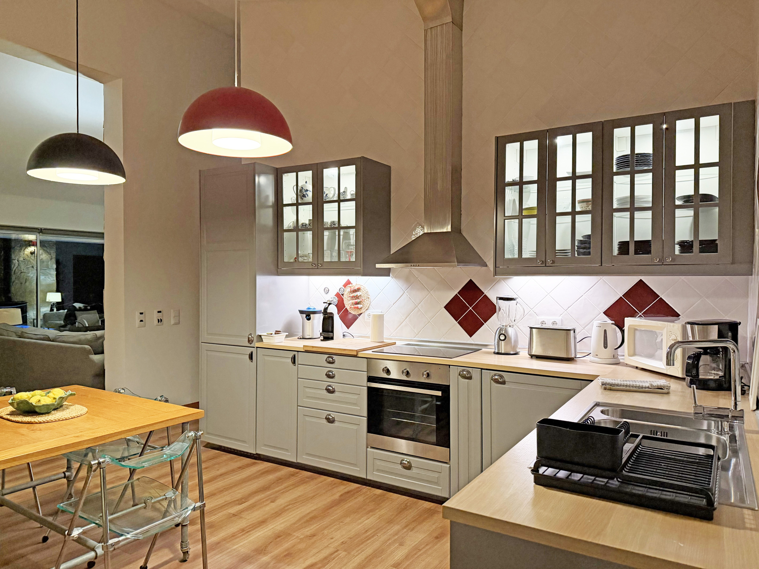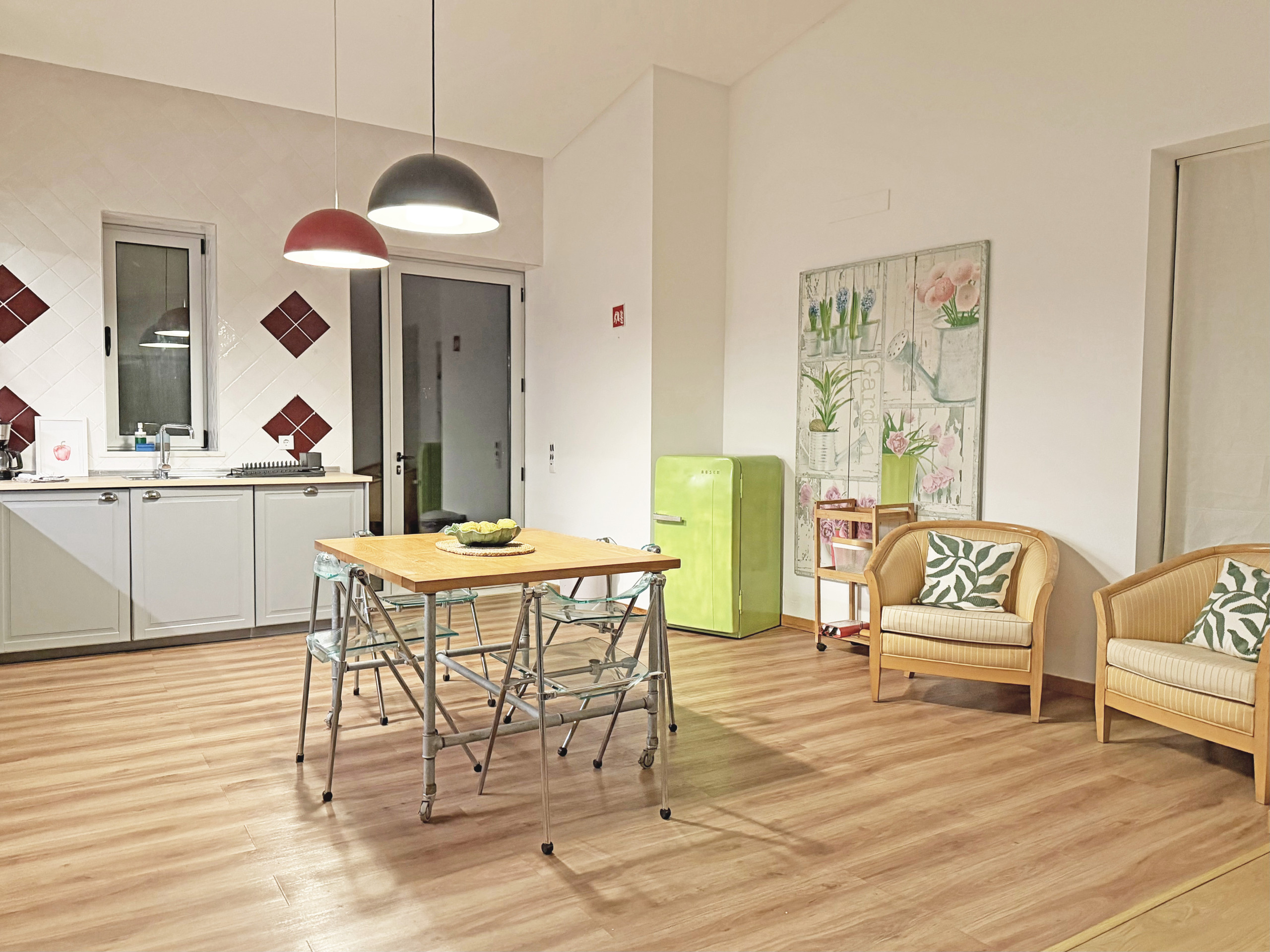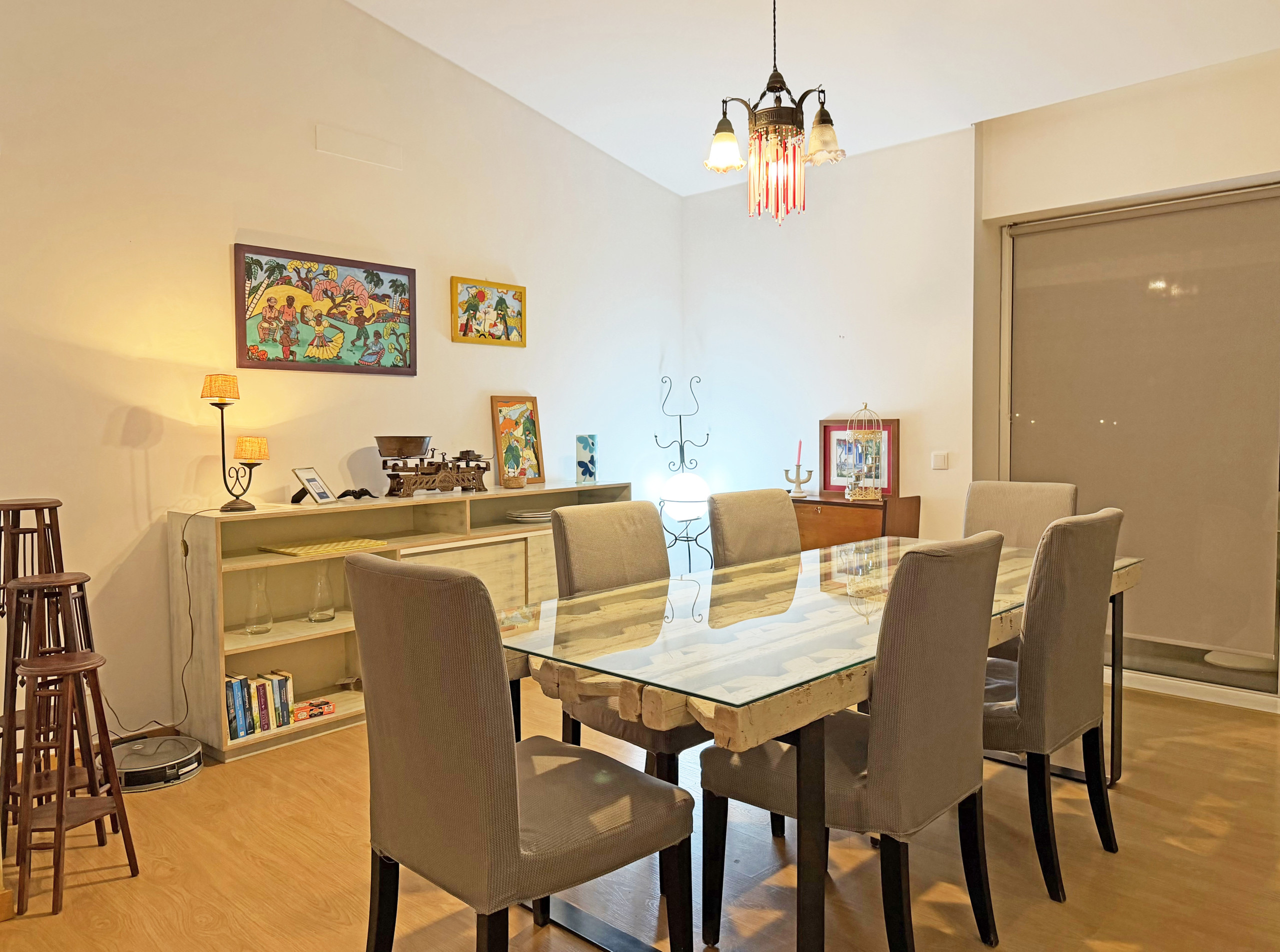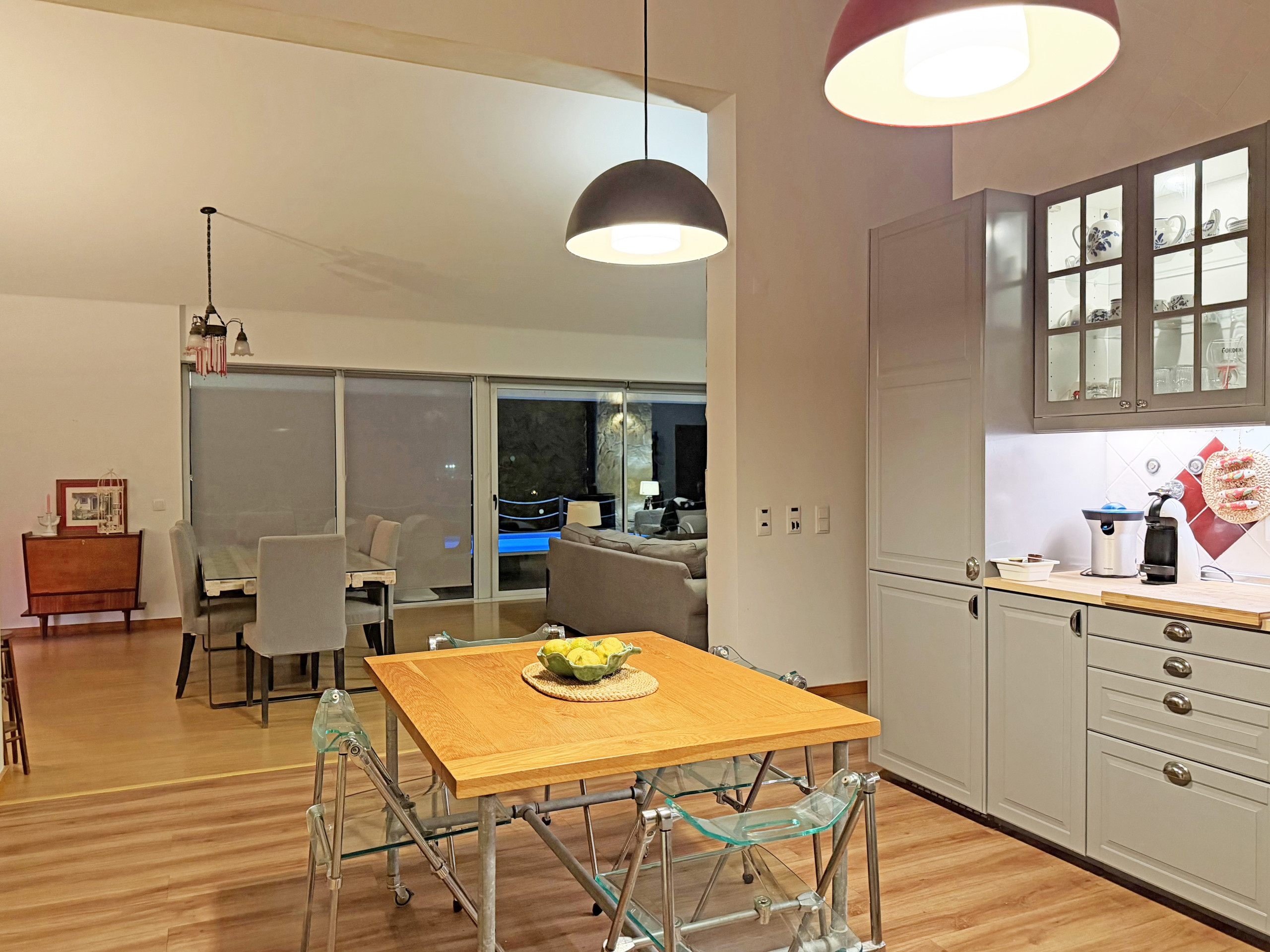 No interior, a zona de estar e a cozinha equipada convidam a partilhar momentos simples e especiais - preparar refeições, reunir à mesa ou simplesmente desfrutar da companhia uns dos outros depois de um dia de praia.