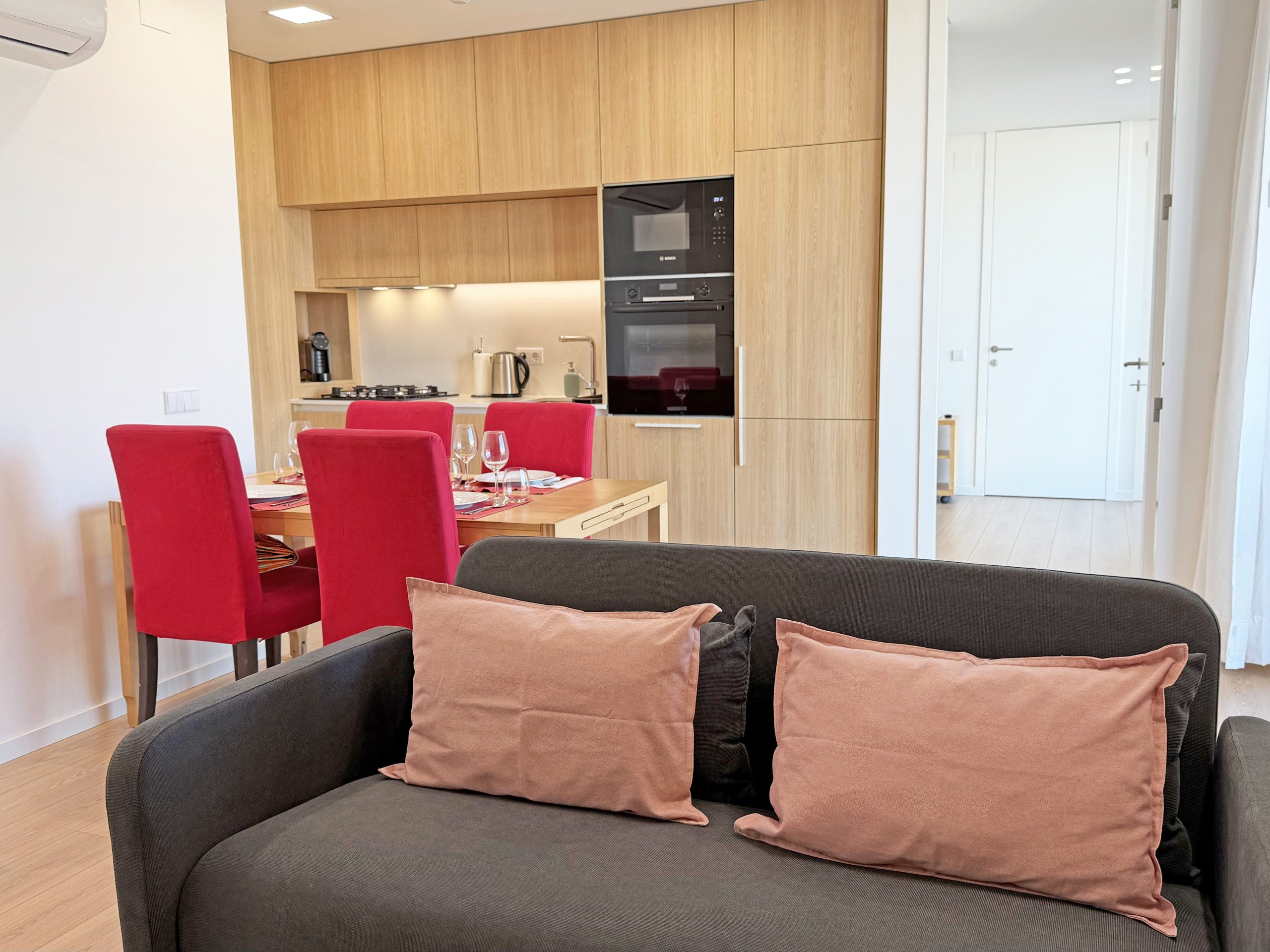I have the ideal arguments for you to enjoy, whether in my living room with sofa bed and dining area where you can savour your gourmet cooking that you can prepare in my fully equipped kitchen, or on my fantastic balcony, where you can glimpse the Ria, so beautiful, with a barbecue where you'll be the chef of your delicious grilled dishes and you'll be dancing on me, with a drink in hand and a smile that only pure happiness and that southern breeze can bring.