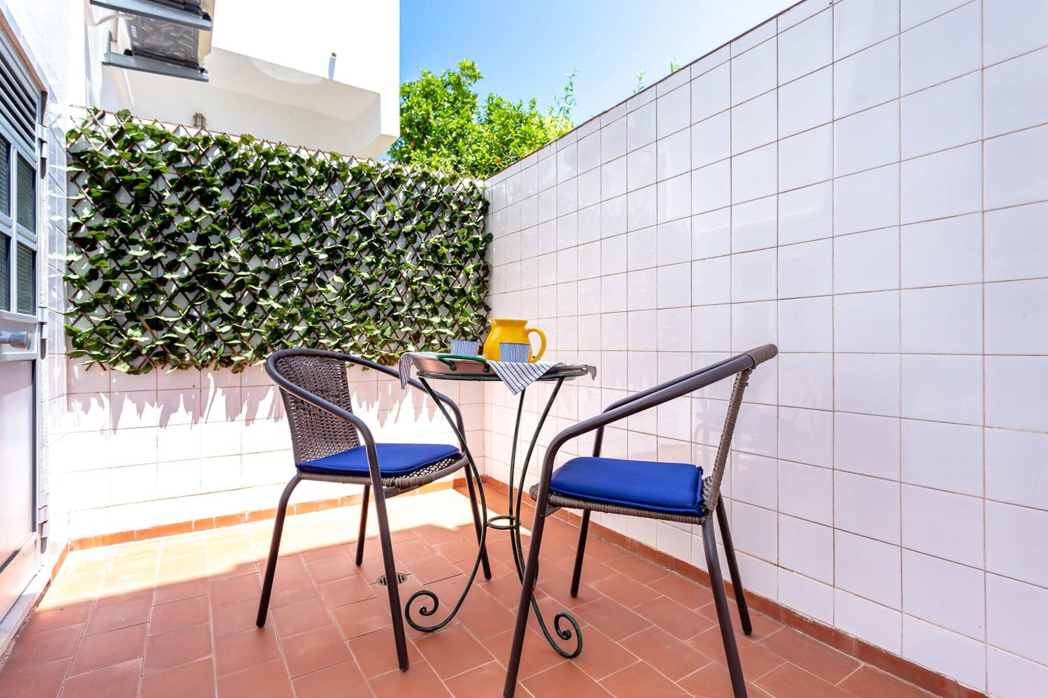 - Acesso direto a um pequeno e agradável pátio com mobiliário de estar