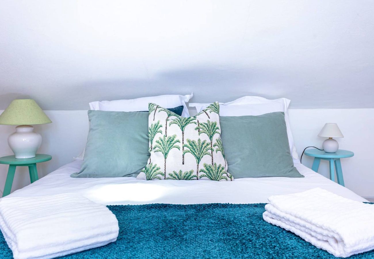 -> 1 Comfortable and cozy sleeping area (bedroom) with 1 double bed, and access to a terrace and a beautiful view of the city with the sea and the Ria Formosa in the distance;
