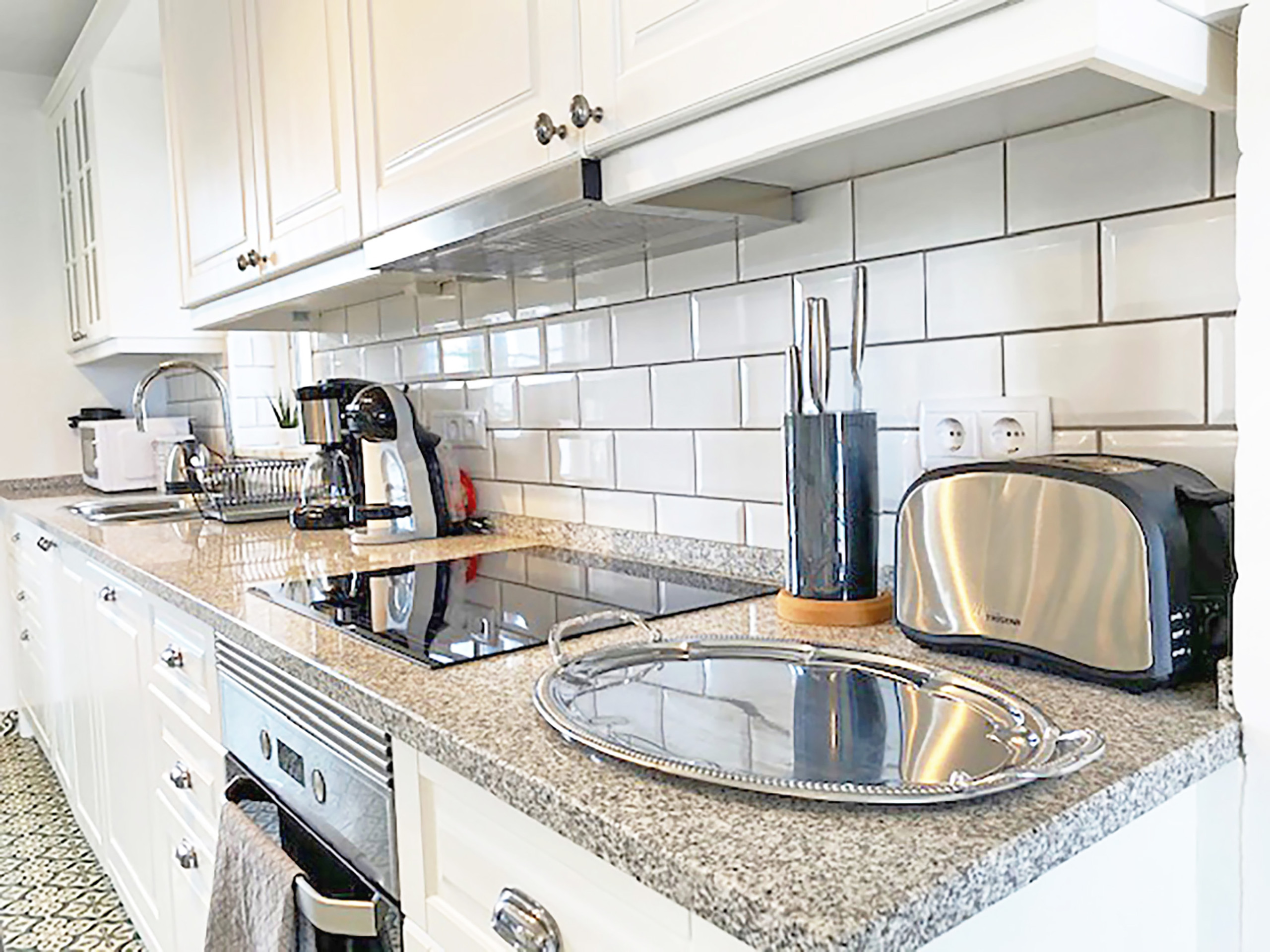 In the induction open plan kitchen, refrigerator, microwave, oven, freezer, dishwasher, dishes/cutlery, kitchen utensils, coffee machine, toaster, kettle and juicer are provided.